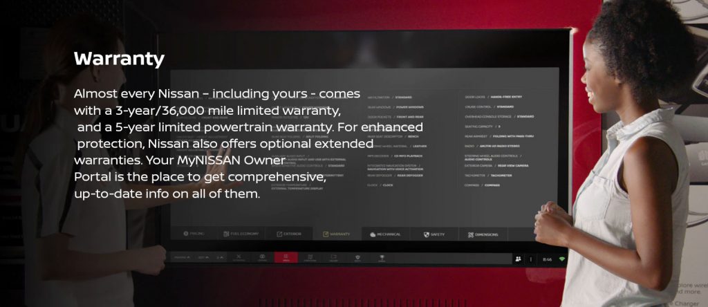 Almost every Nissan – including yours – comes with a 3-year/36,000 mile limited warranty, and a 5-year limited powertrain warranty. For enhanced protection, Nissan also offers optional extended warranties. Your MyNISSAN Owner Portal is the place to get comprehensive, up-to-date info on all of them.