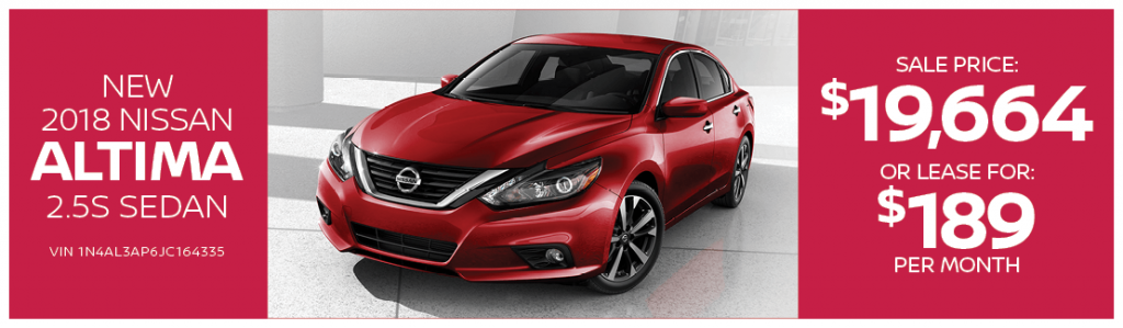 Lease the 2018 Nissan Altima 2.5S Sedan for only $189 per month or purchase with the Sale Price of: $19,664