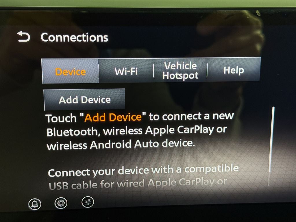 - Radio: AM/FM Audio System w/NissanConnect -inc: 6 speakers, 5G Wi-Fi hotspot, wireless Apple CarPlay and Android Auto, 12.3" center touch-screen display, SiriusXM satellite radio, 2 front USB connection (1 type C charge and data ports), Bluetooth® hands-free phone system, streaming audio and messaging and hands-free text messaging assistant