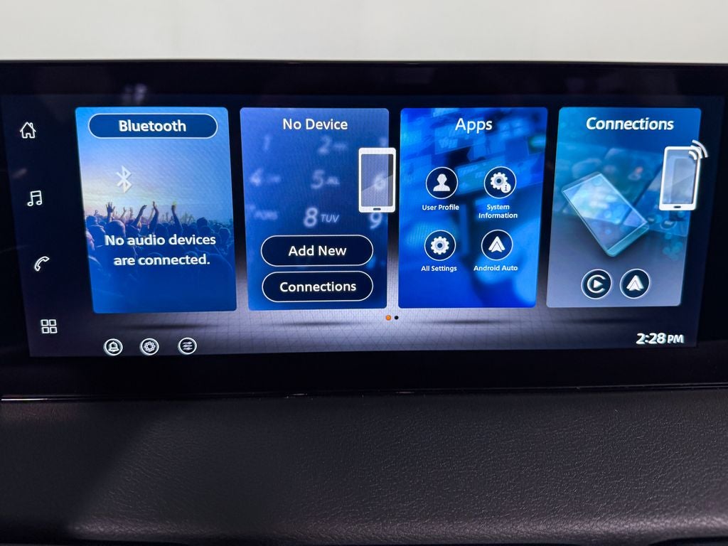 - Radio: AM/FM w/RDS/MP3 -inc: 4 speakers, 12.3" NissanConnect multimedia center display, Bluetooth® hands-free phone system, streaming audio via Bluetooth®, hands-free text messaging assistant, Siri Eyes Free, Google Assistant voice recognition, Apple CarPlay, Android Auto and (2) front USB connection port (type C)