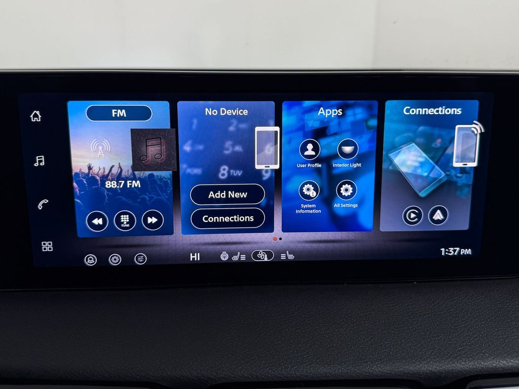 - Radio: AM/FM w/RDS/MP3 -inc: 4 speakers, 12.3" NissanConnect multimedia center display, Bluetooth® hands-free phone system, streaming audio via Bluetooth®, hands-free text messaging assistant, Siri Eyes Free, Google Assistant voice recognition, wireless Apple CarPlay and Android Auto and (2) front USB connection port (type C)