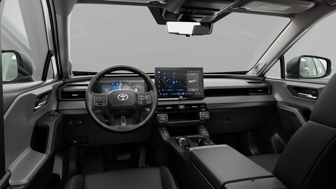 - Black carpet flooring with driver-side footrest