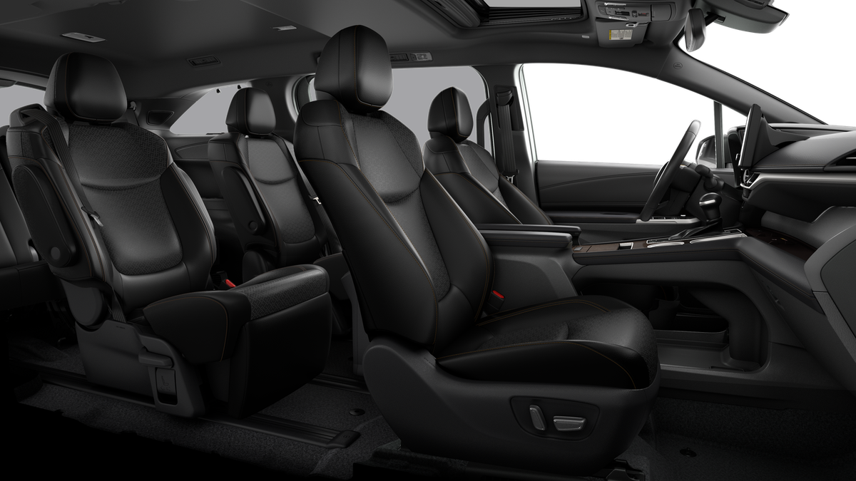 - 7-passenger seating with heated premium leather-trimmed second-row-seat captain's chairs with super-long-slide feature and ottomans [reclining_seat] [sienna_ottoman]sienna_ottomansienna_ottoman]
