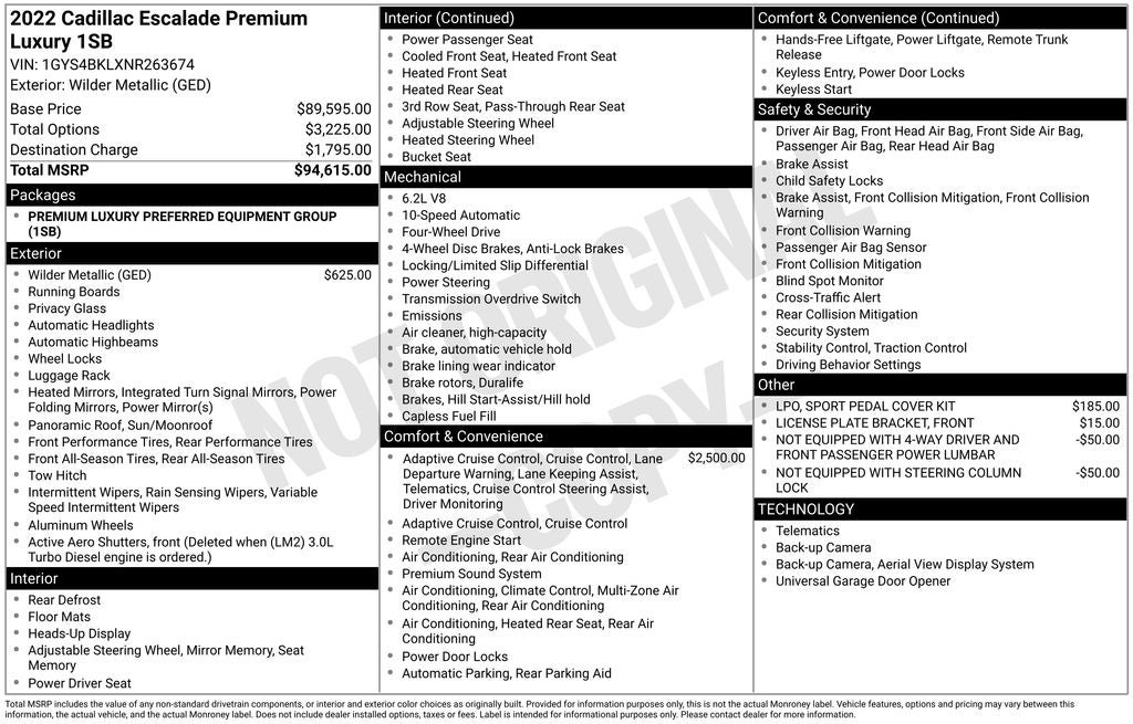 - Vehicle Name: Cadillac Escalade