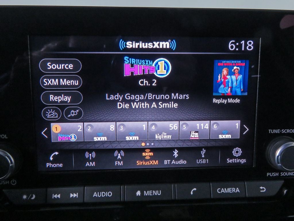 - Radio: AM/FM Audio System w/NissanConnect -inc: 6 speakers, Radio Data System (RDS), Apple CarPlay and Android Auto, 8" color display w/multi-touch control, SiriusXM satellite radio w/advanced audio features, 2 illuminated front USB connection ports (1 type A, 1 type C) for iPod interface and other compatible devices, Bluetooth® hands-free phone system and streaming audio, Speed-Sensitive Volume control (SSV), hands-free text messaging assistant and Siri Eyes-Free/Google Assistant voice recognition